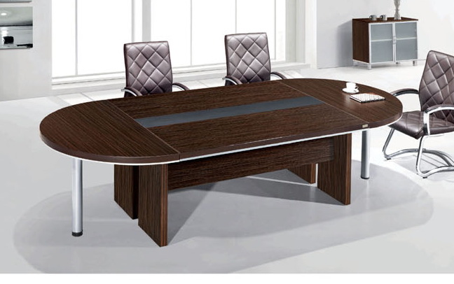Oval shaped, pressure laminated wooden top and Alum support, comprising of 2 semicircular parts and two longish rectangular parts, 4 corners which are combined to form one unit, designed with void in the meeting for planters, good, heavy duty and affordable quality to accommodate 10-14 people.