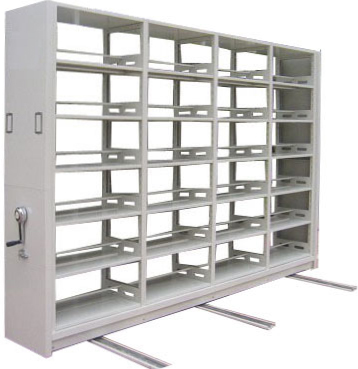 擱板每層均勻承重,最大承重大于或等于800Kg,滿負(fù)荷24小時后最大撓度小于1.5mm,卸載后2小時,擱板不會出現(xiàn)裂縫,殘縫變形量不大于0.2毫米 。在全負(fù)載情況下,各列密集架都運行自如,不會出現(xiàn)阻現(xiàn)象,單列運行手柄搖力不大于11.8N。在主動列的推動下,將其它列向前移動,直至到位停止每列設(shè)有安全限位、防倒及自鎖裝置。